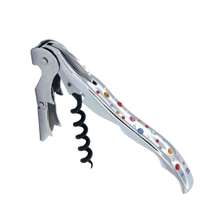 Un descorchador de edición especial que deslumbra con cristales Swarovski en un diseño multicolor tipo arcoíris.