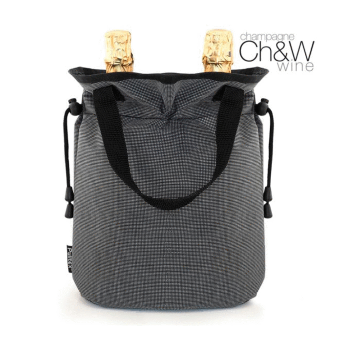 Práctica y elegante, la Cooler Bag To Go 2 Bot. permite mantener dos botellas de vino o champagne a la temperatura ideal por más tiempo.