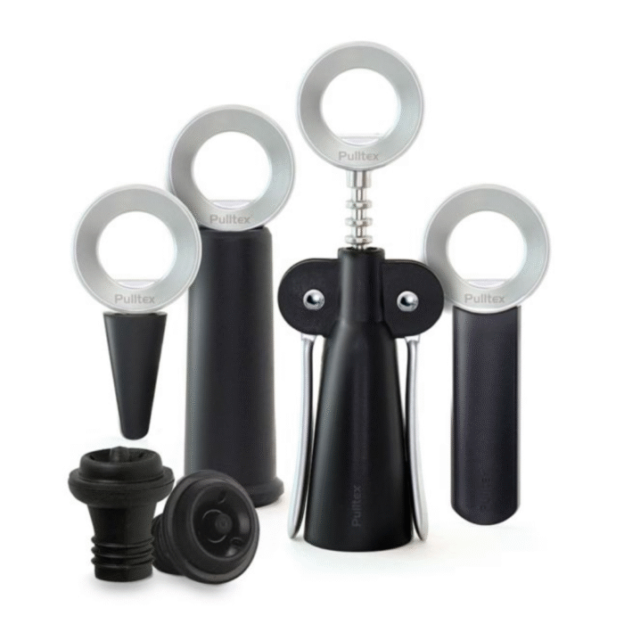 Práctico y completo, este set de 4 piezas incluye todo lo necesario para abrir, servir y conservar el vino en óptimas condiciones.